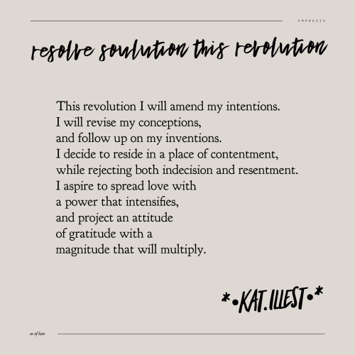 This resolution is about tending to my attention. I will act on inspiration, and follow up with examination. I will be ridiculously productive and produce records in revolution. I aspire to inspire others to calculate constructively, and concentrate on consciousness, by creating conversions in conversation.